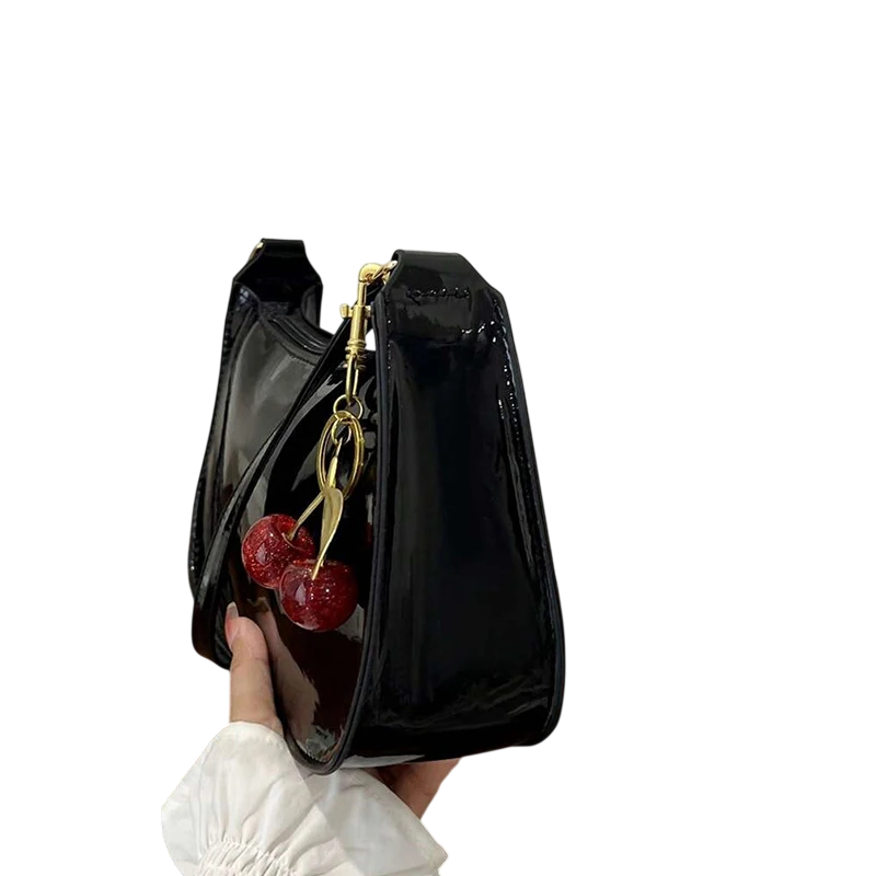 Mala de senhora estilosa com um divertido pendente de cereja que oferece espaço prático, conforto no transporte e um visual moderno para o dia a dia. Descrição completa