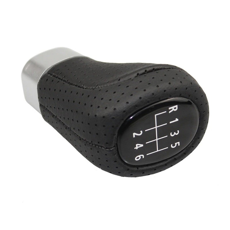 Manete de mudança de 6 velocidades na cor preta, fabricado em pele de alta qualidade e plástico, compatível com modelos BMW série 1/3 E46, E60, E63, E64, E87, E88, E90, E91, E92, E93. Descrição completa