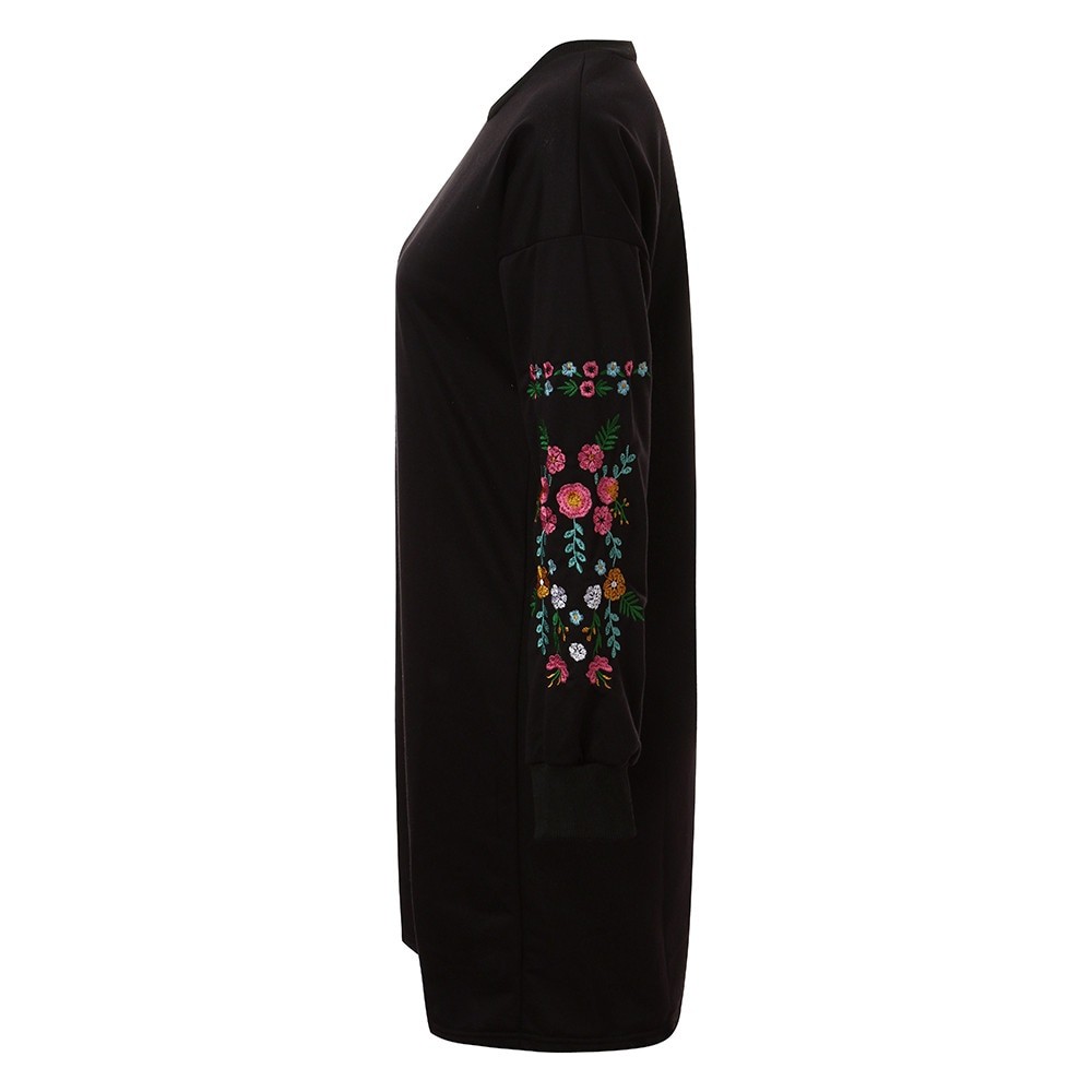 Manga longa preta com flores para senhora