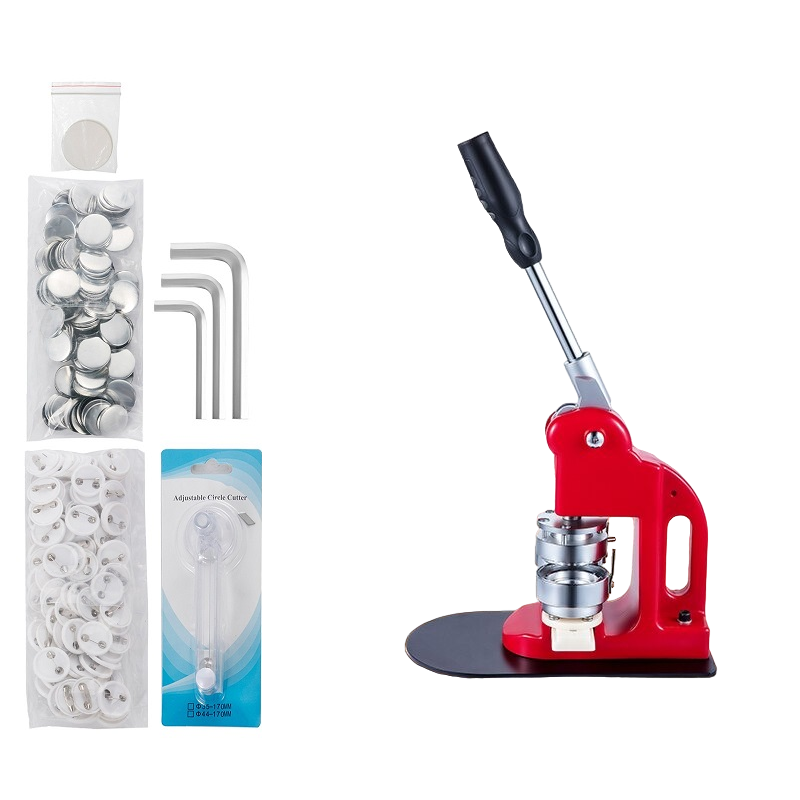 Com a máquina de produção de botões de 44 mm, pode criar botões com imagens e slogans à sua escolha. O melhor de tudo é que é muito fácil de usar, basta puxar a alavanca e o botão único está pronto. A máquina tem dimensões de 48,5 x 29 x 15,5 cm.
