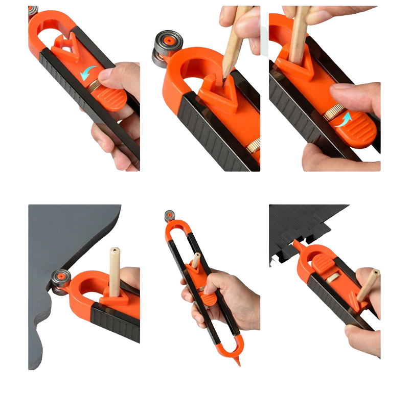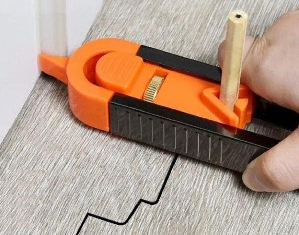 Precisa de cortar material em formas irregulares? Não procure mais! Temos a solução na forma de um medidor de contornos. Com fixação firme para lápis, pode desenhar o contorno exato para posterior corte. Graças ao acabamento em ponta afiada e em roda consegue alcançar até os locais mais difíceis