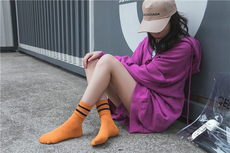 Meias altas femininas com riscas