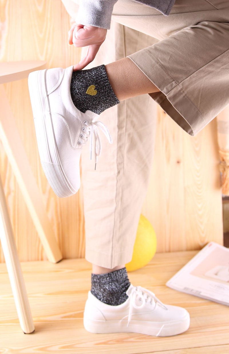 Meias brilhantes com coração para senhora