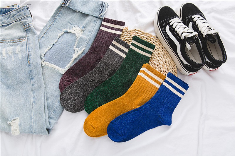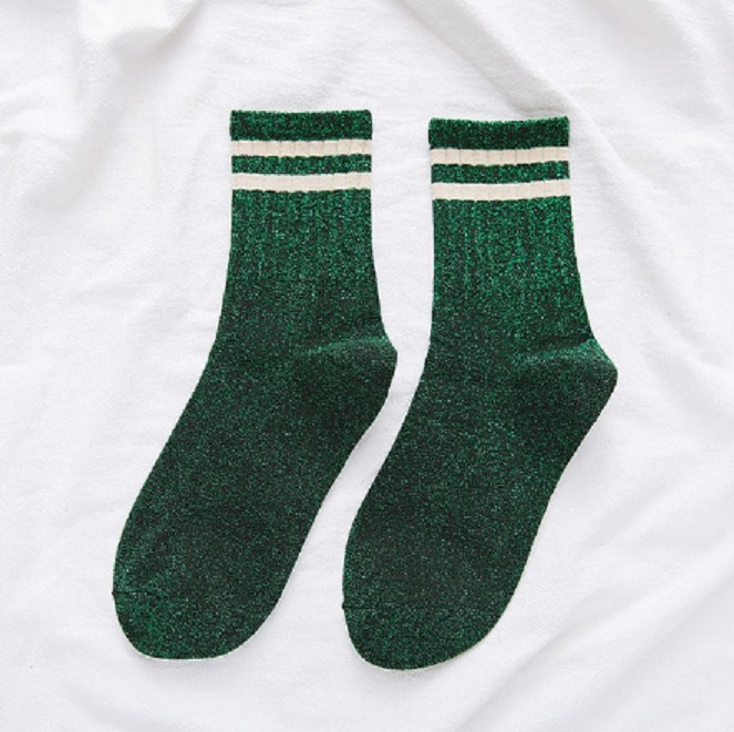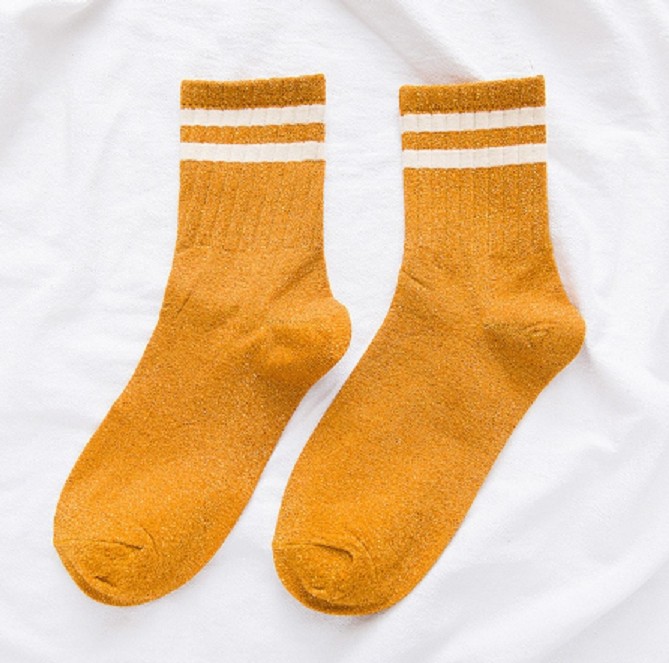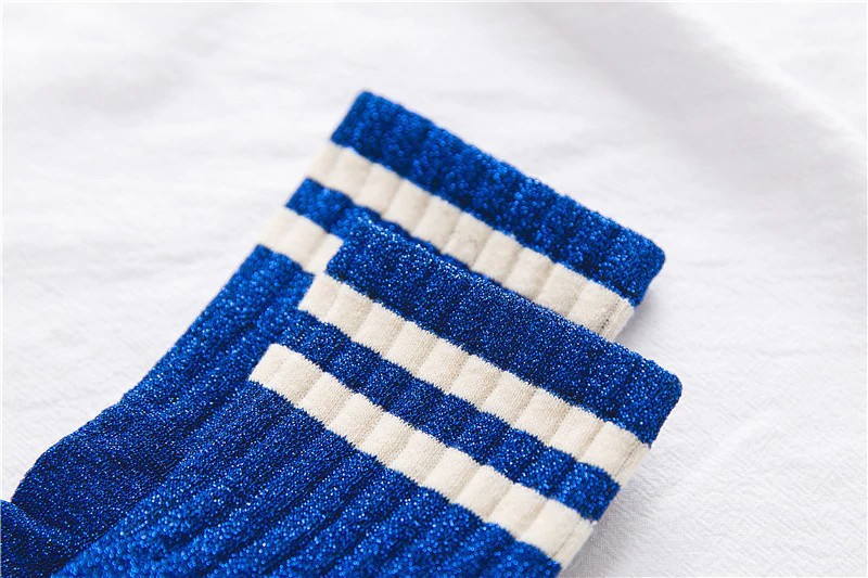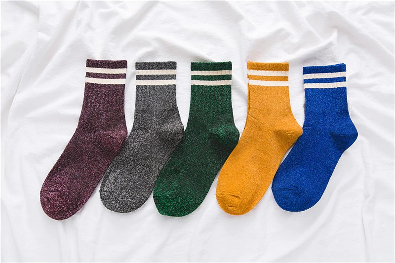 Meias brilhantes para senhora com riscas são mais uma tendência da moda que não pode faltar na sua gaveta!