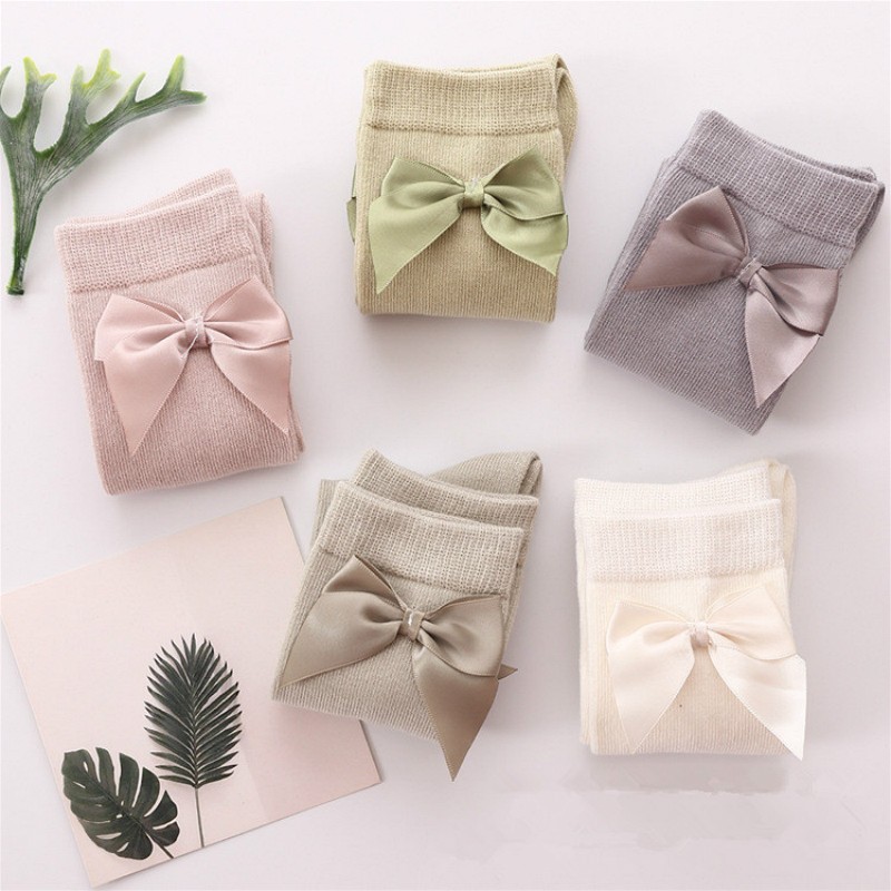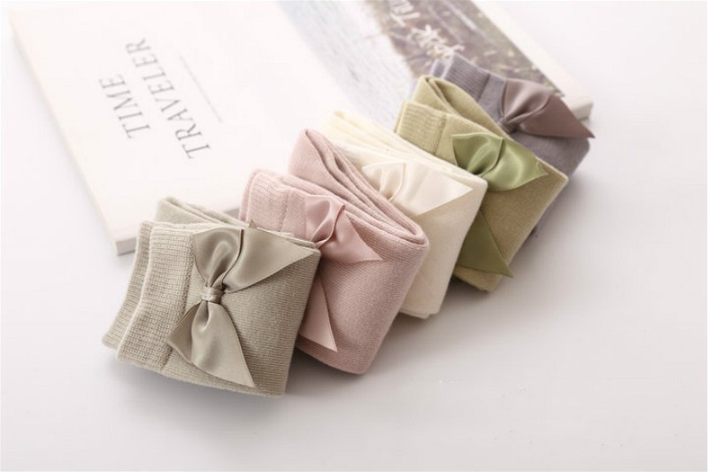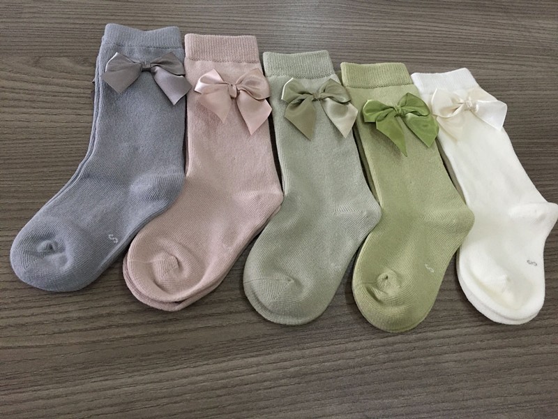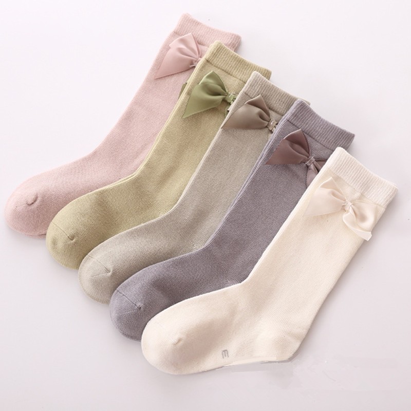 Meias de algodão para meninas com laço - 5 pares