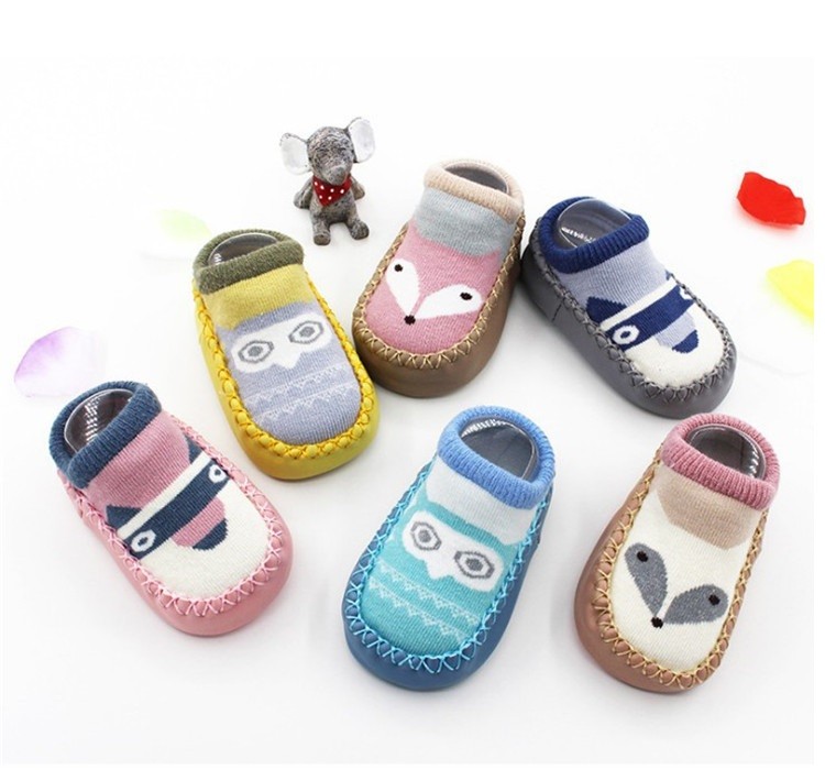 Meias de qualidade com sola mais rígida e estampado de animais.