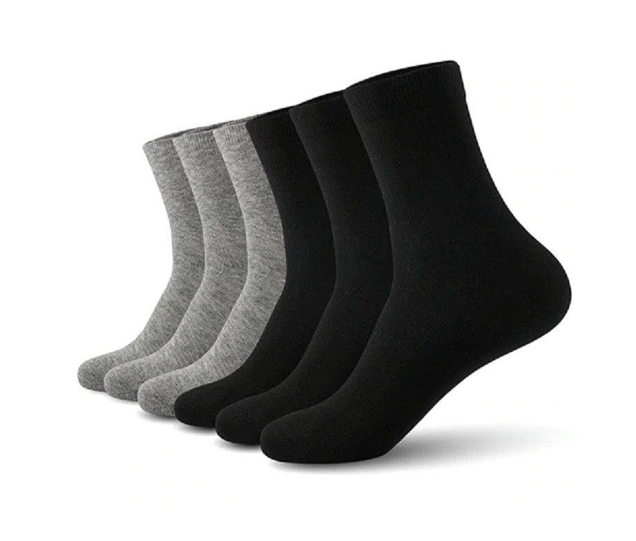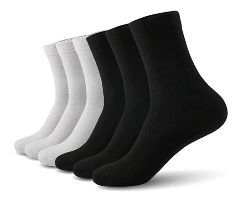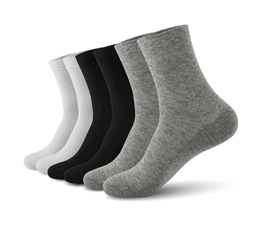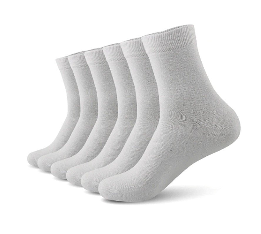 As meias estão disponíveis em embalagem económica de 6 unidades.