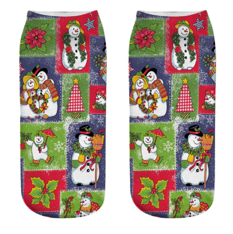 Meias de Natal femininas com impressão 3D de boneco de neve