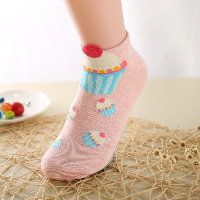 As meias têm um design adorável. Estão bordadas com bolinhas e cobertura.