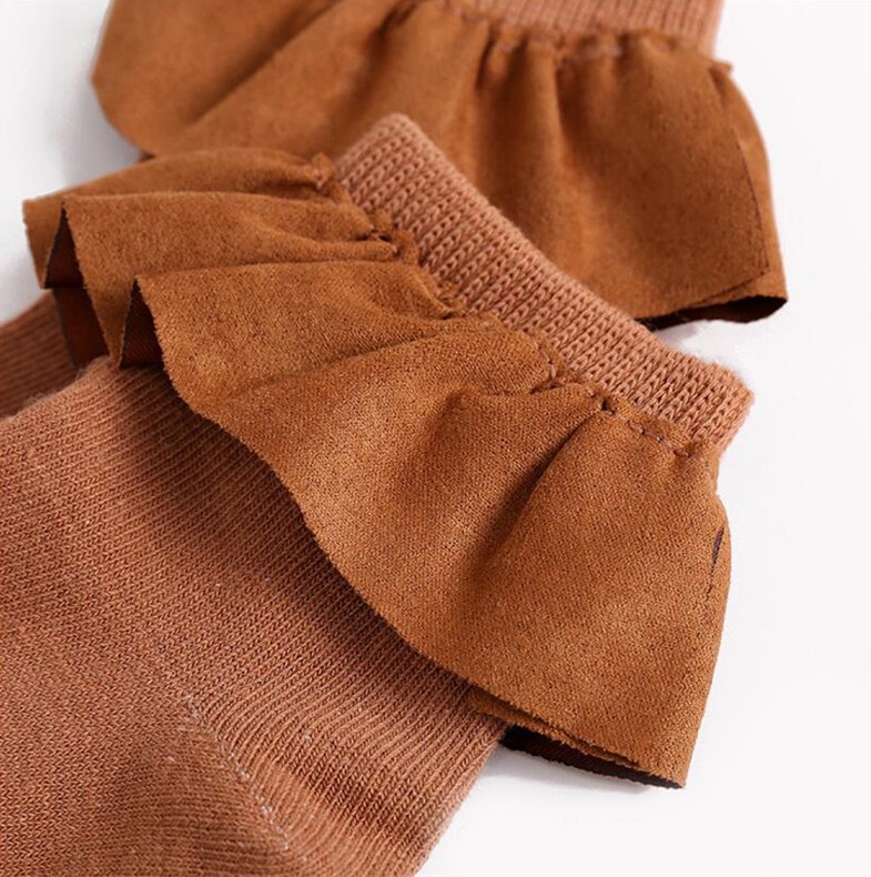 Estas lindas meias são adornadas com volantes nos tornozelos.