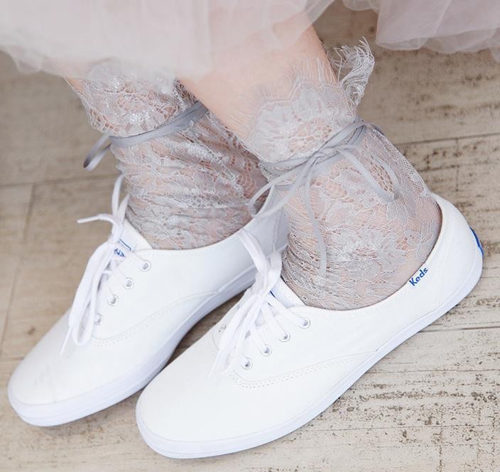 As meias de renda assentam perfeitamente em sandálias de salto!