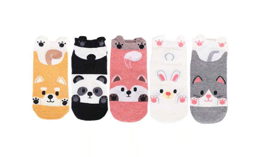Meias de tornozelo femininas com animais - 5 pares
