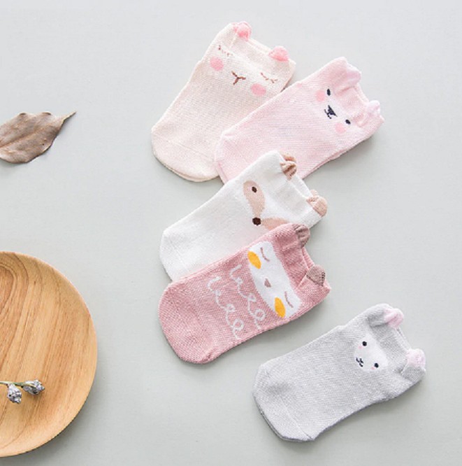 Meias de tornozelo para meninas com animais - 5 pares