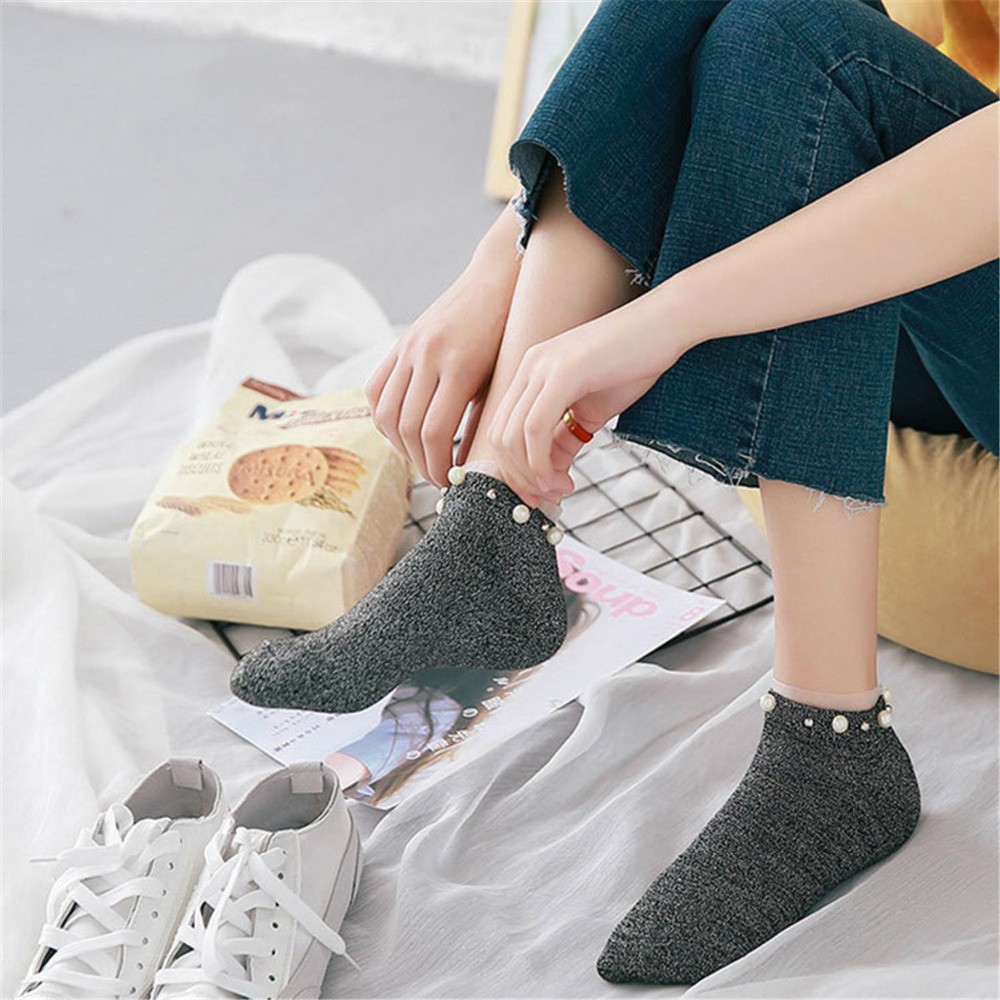 Meias de tornozelo para senhora com pérolas