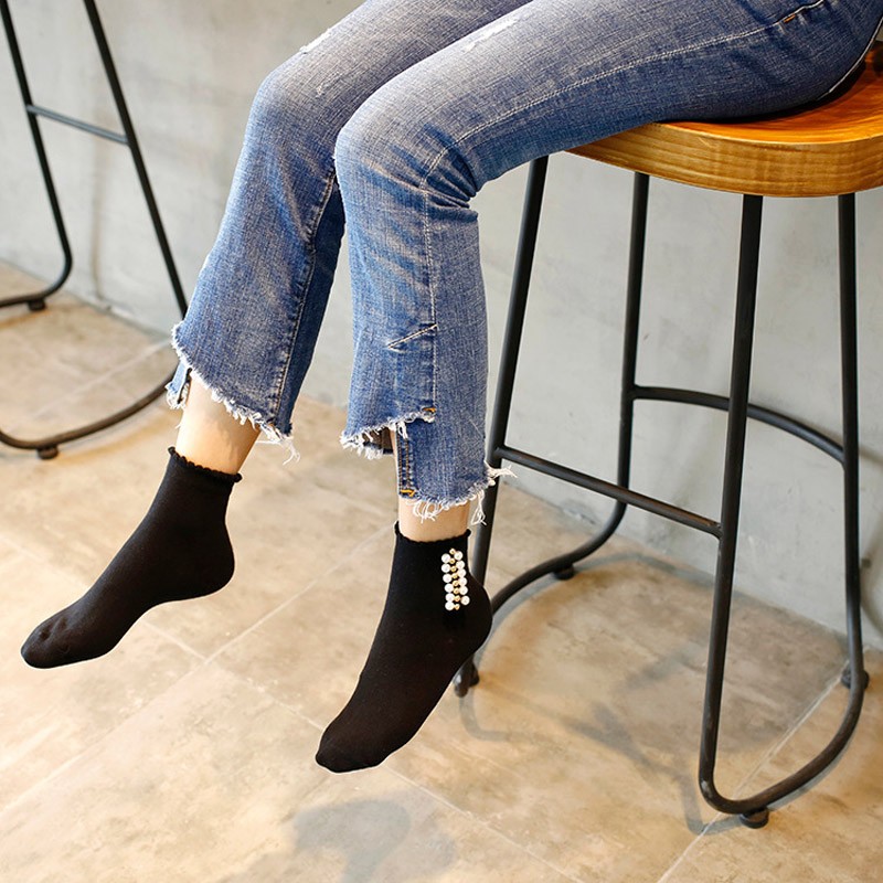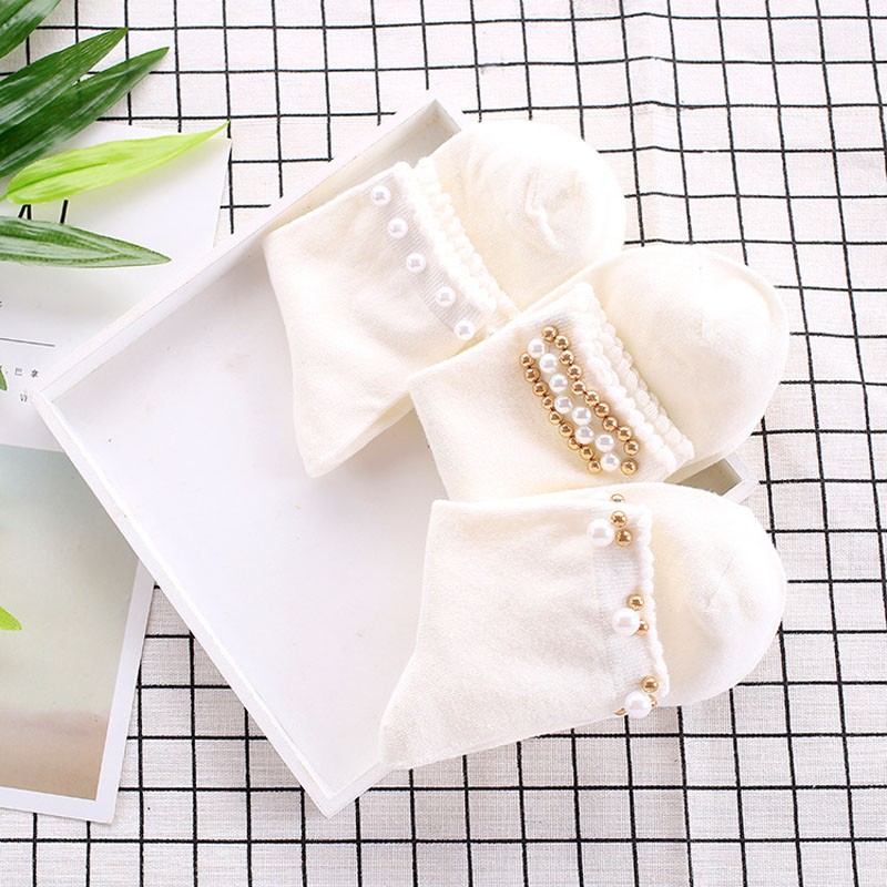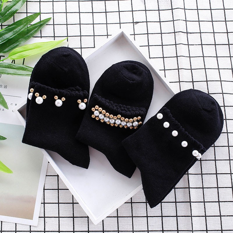 Meias de tornozelo para senhora com pérolas