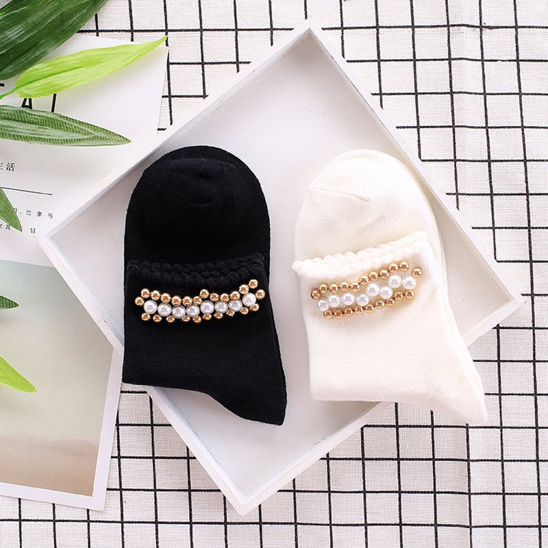 As meias são adornadas com pérolas e combinam com qualquer outfit!