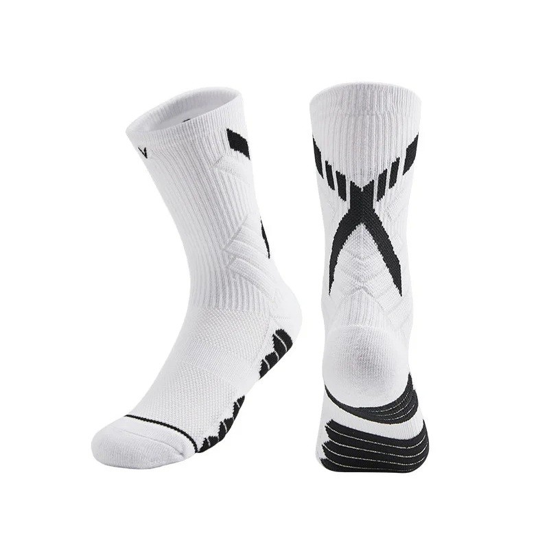 Meias desportivas antiderrapantes de alta qualidade com material elástico e respirável. Ideais para corrida, futebol e treino com máximo conforto. Descrição completa