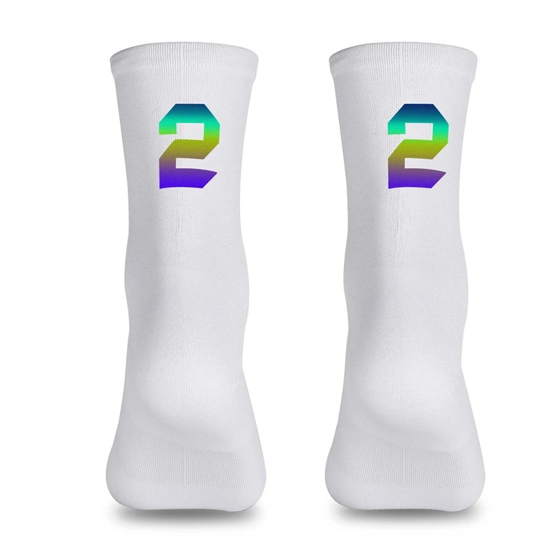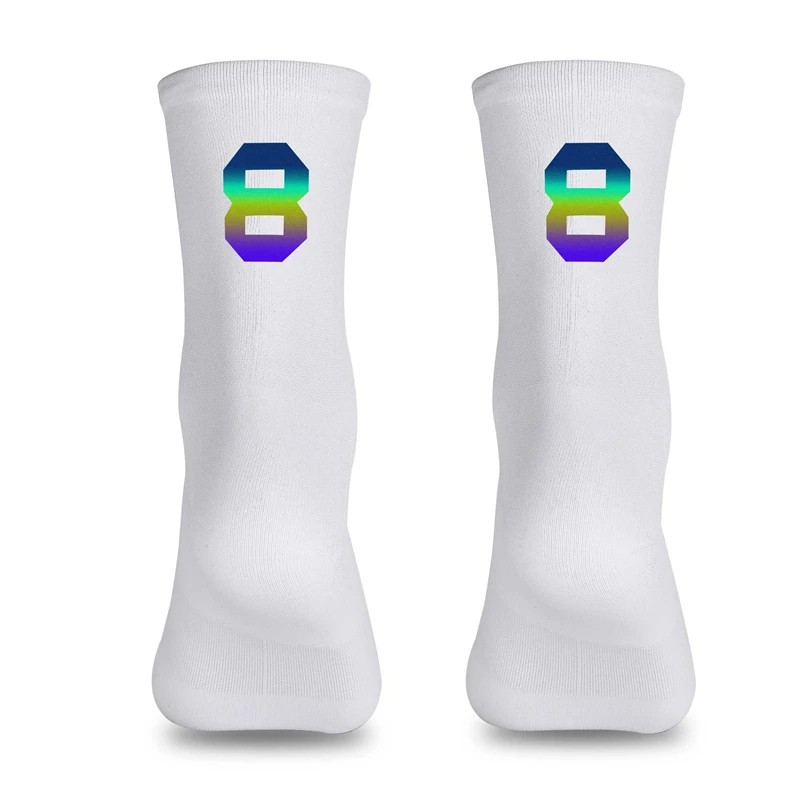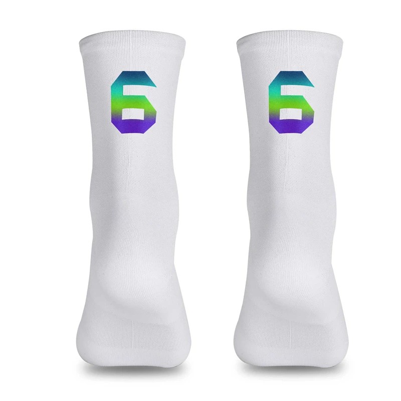 Meias brancas de alta qualidade e respiráveis para ciclismo, corrida e atividades ao ar livre. A tecnologia de compressão proporciona suporte muscular e melhor desempenho desportivo. Descrição completa
