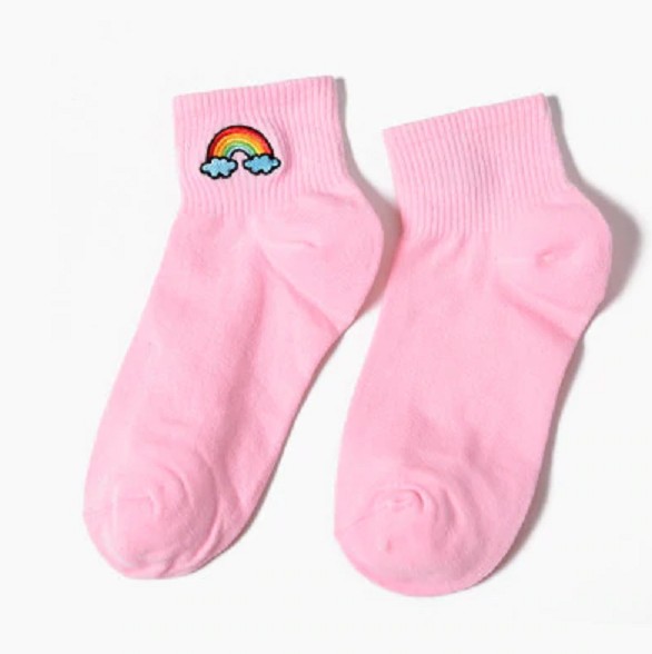 As meias têm um arco-íris no tornozelo, que embeleza todo o seu outfit!