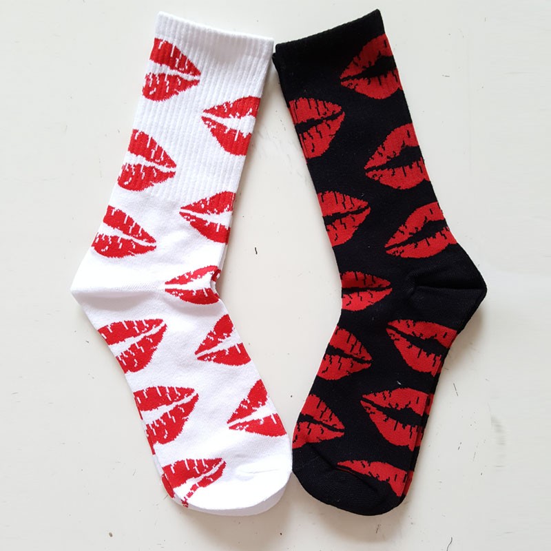 Meias femininas com estampado de lábios