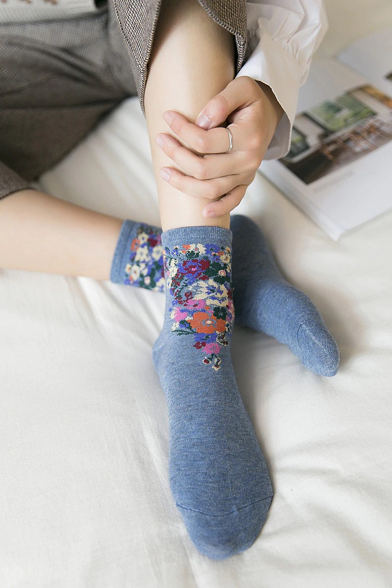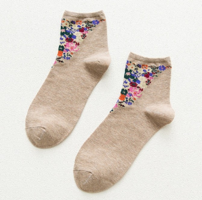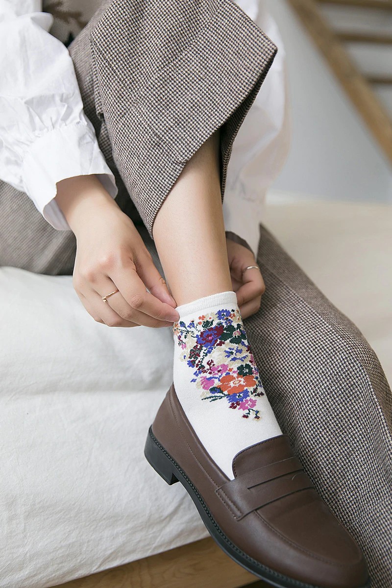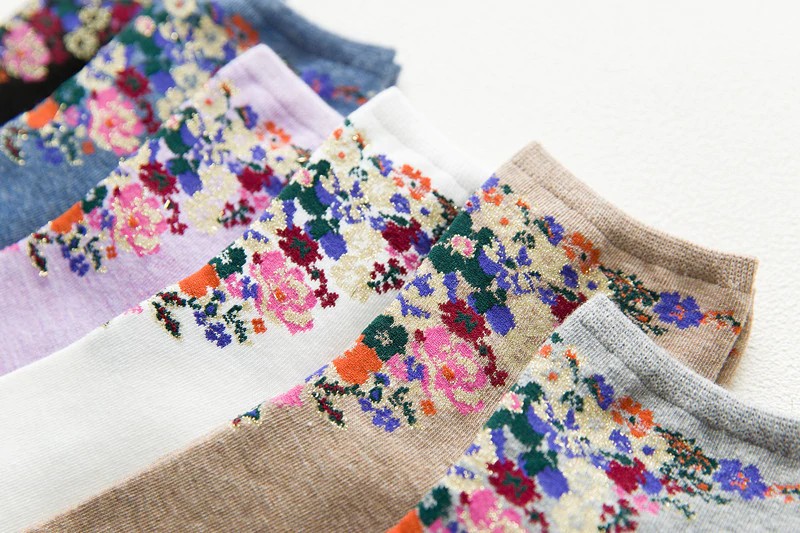 As meias são decoradas com flores.
