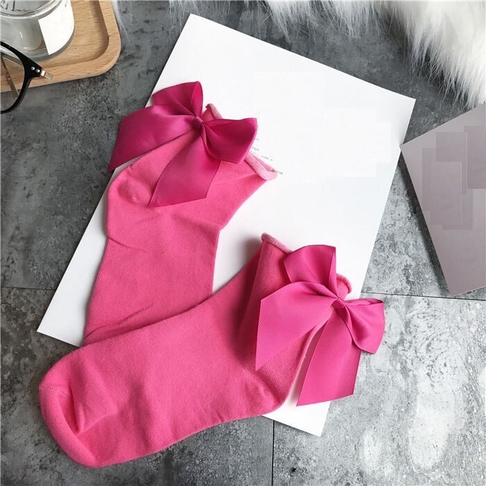 As meias são estilosas e ao mesmo tempo adoráveis, pois têm um laço na parte superior do tornozelo.