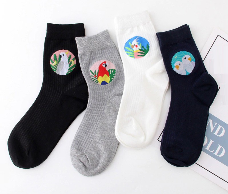 Meias femininas com papagaios