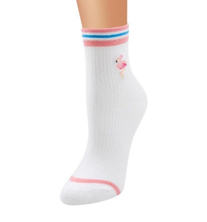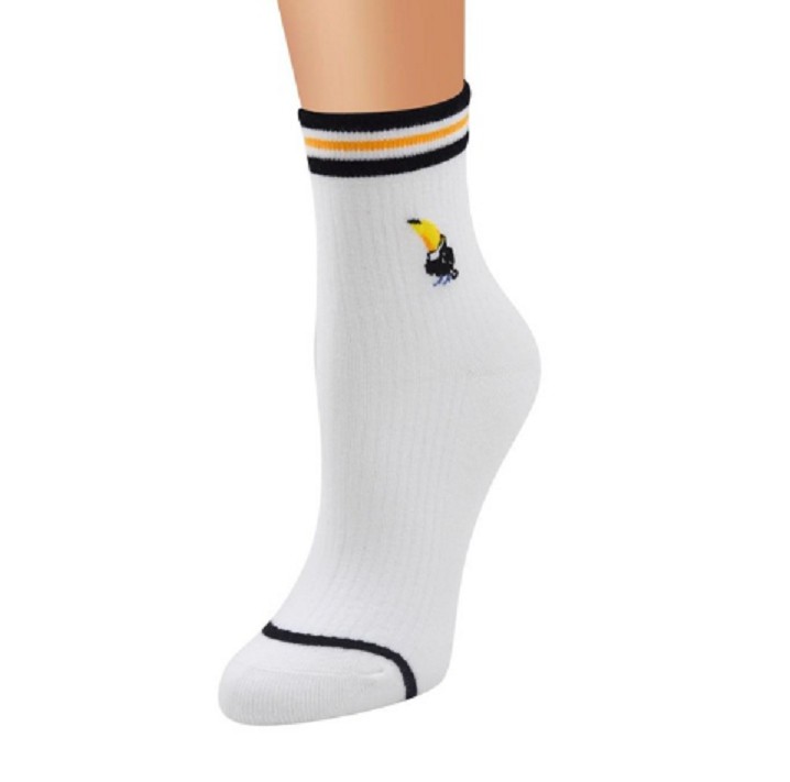 As meias apresentam pequenos desenhos de várias espécies de pássaros.