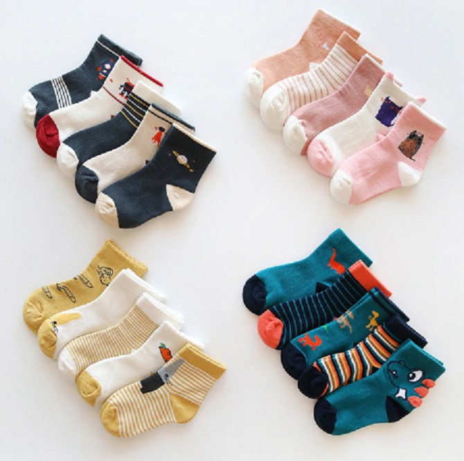 Meias com vários desenhos são adequadas para rapazes e raparigas.