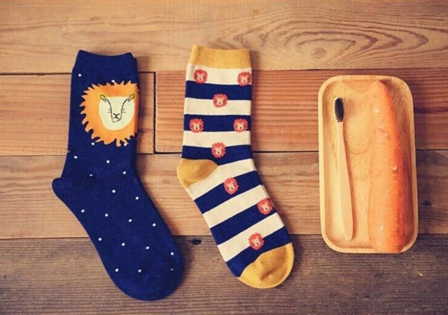Estas meias com estampado de leões são quentes e muito confortáveis.