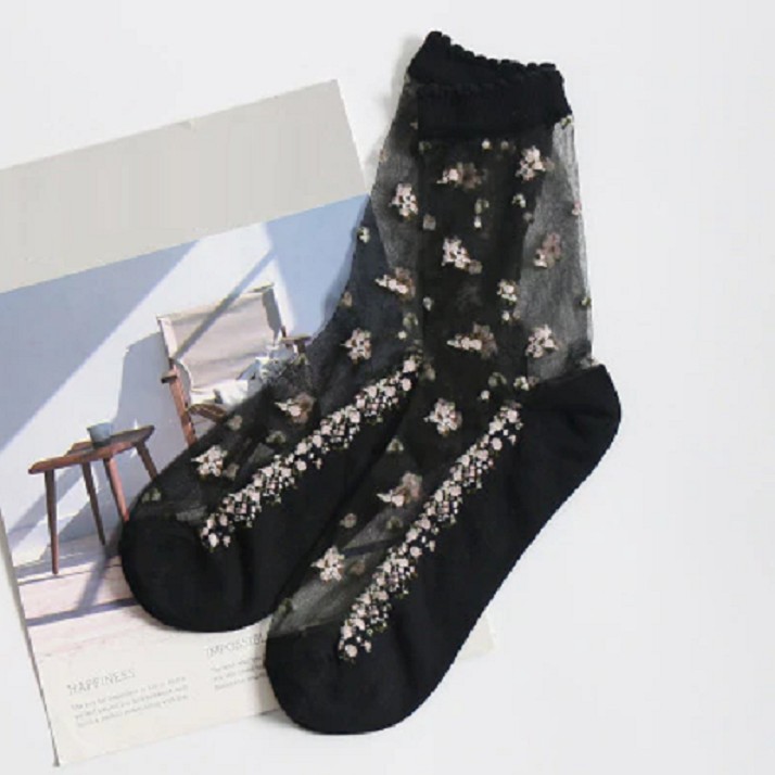 As meias transparentes Black decoradas com delicadas rosas vão conquistar o seu coração!