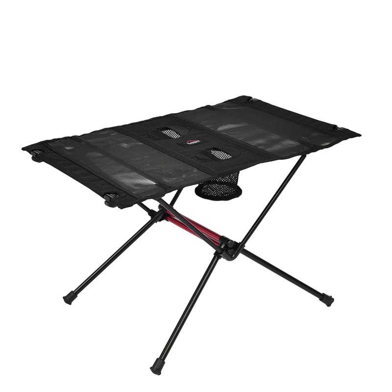 Graças ao simples sistema de montagem e desmontagem, a utilização é rápida e sem complicações. A mesa vem ainda equipada com um saco de armazenamento, que facilita o transporte e a protege durante o deslocamento. Este modelo oferece uma superfície estável para colocar alimentos, bebidas ou utensílios durante as viagens, tornando-se assim um ajudante inestimável em qualquer atividade ao ar livre.