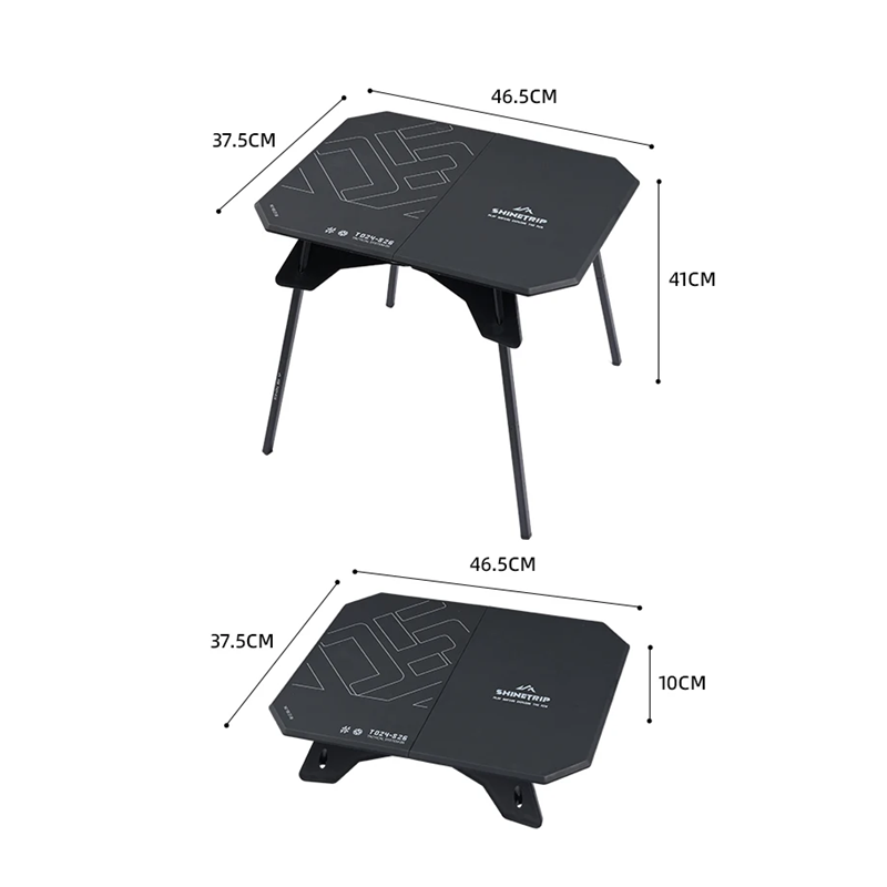 Mesa dobrável portátil 46,5 x 37,5 cm Estrutura em alumínio Tampo em ABS Altura 41 cm ou 10 cm Mesa de campismo Saco de armazenamento