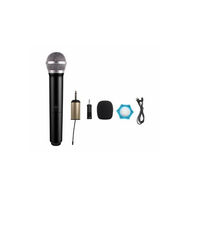 Conteúdo da embalagem: 1x microfone, 1x transmissor jack de 6,35 mm, 1x adaptador jack de 3,5 mm, 1x cabo, 1x capa antiderrapante