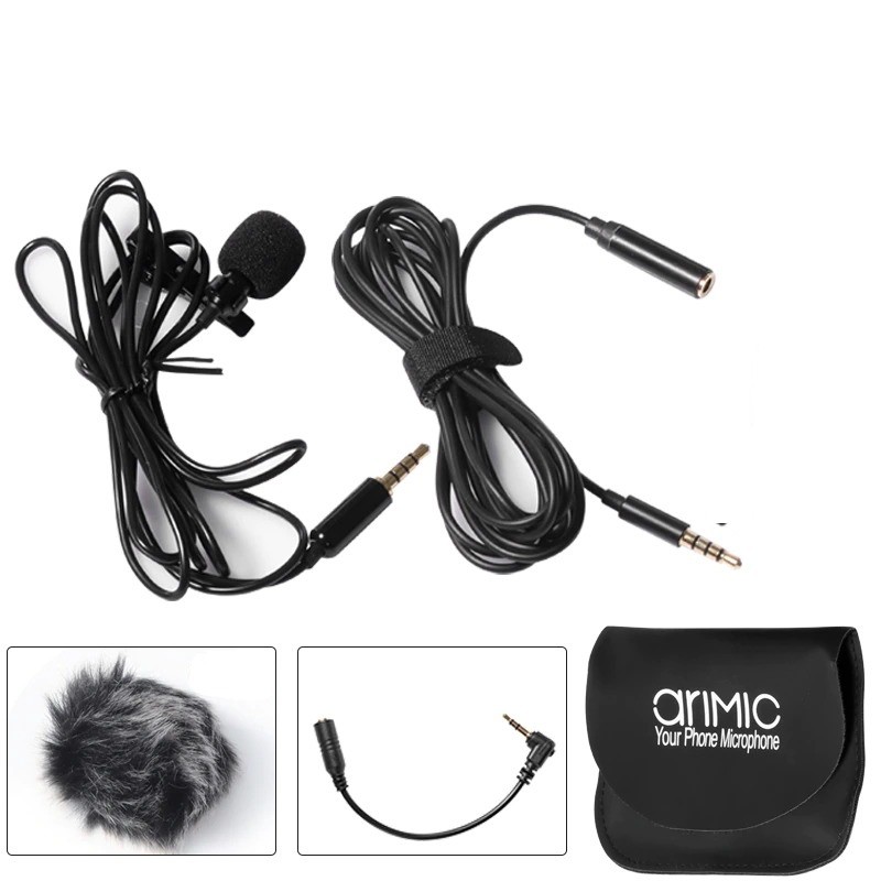 Microfone de lapela com acessórios