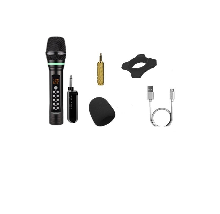 Conteúdo da embalagem: 1x microfone, 1x receptor, 1x adaptador 3,5 mm jack, 1x cabo USB de carregamento, 1x anel antiderrapante