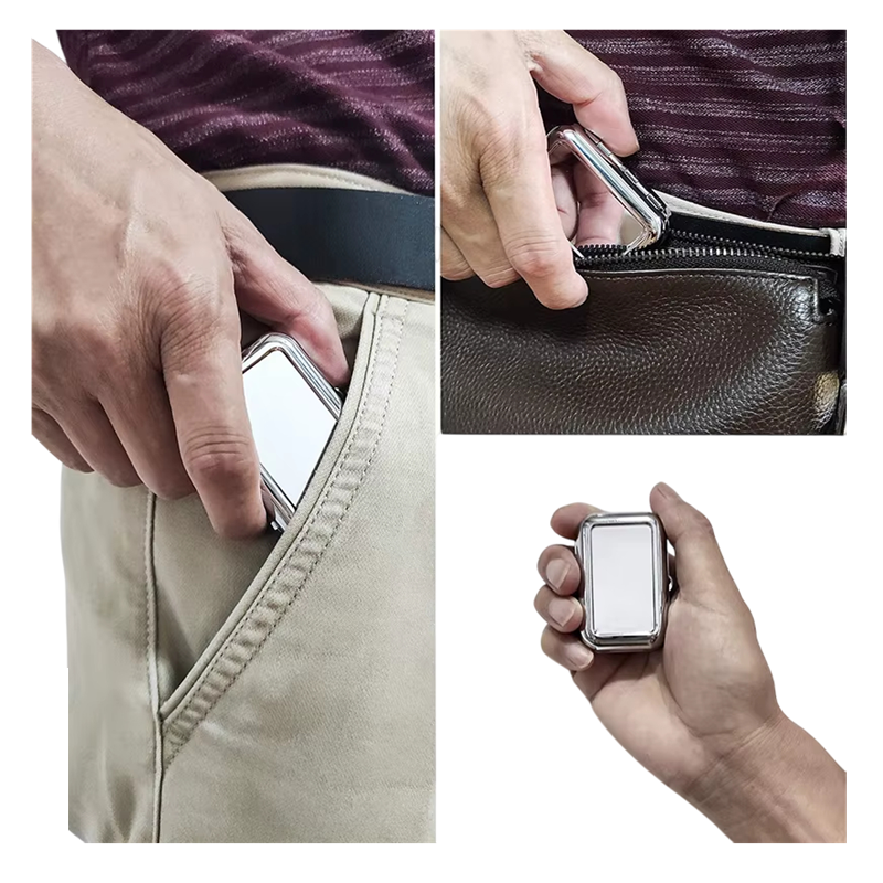 Este cinzeiro compacto e estiloso é feito de aço inoxidável resistente, que garante longa durabilidade e fácil manutenção. Graças à tampa trancável, as cinzas e restos de cigarros são mantidos em segurança dentro, assegurando limpeza e conforto durante o uso. O cinzeiro é projetado em dimensões práticas de 4.5x6x2 cm, permitindo que se encaixe confortavelmente no bolso, na mala ou no carro. É adequado não apenas como cinzeiro de bolso, mas também como um acessório de mesa que impressiona pela sua simplicidade e funcionalidade.