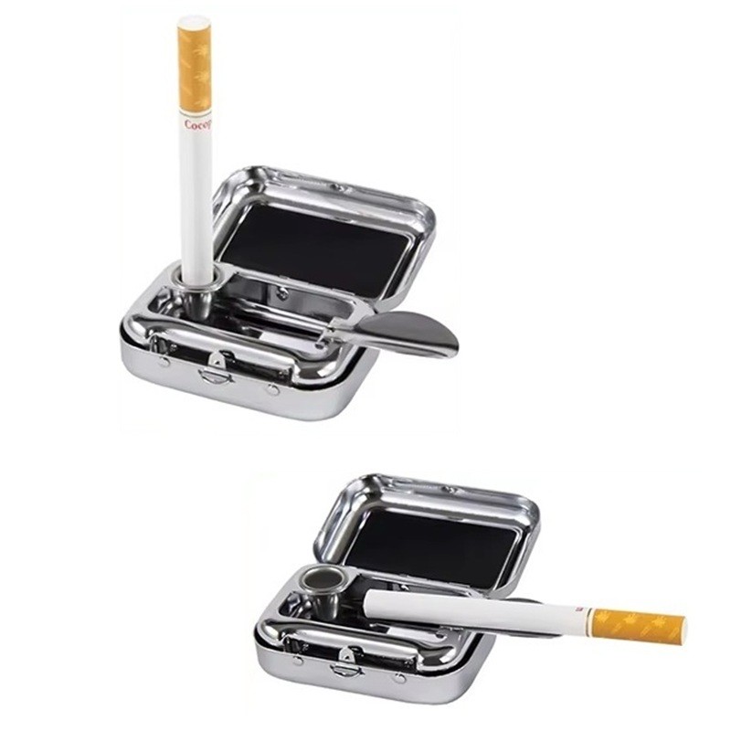 Mini cinzeiro metálico portátil 4.5x6x2 cm Cinzeiro de bolso em aço inoxidável Cinzeiro de mesa com tampa trancável