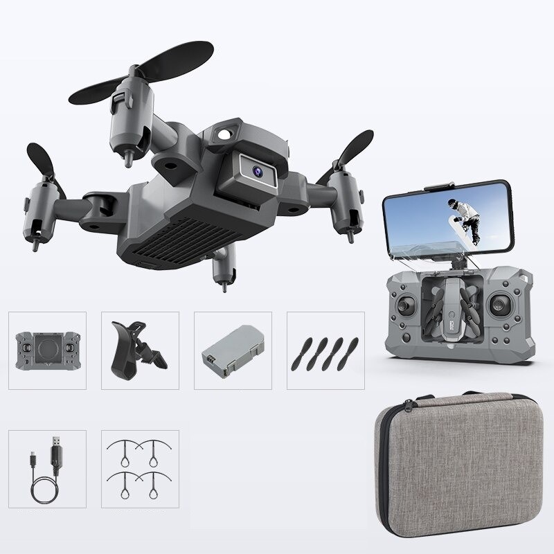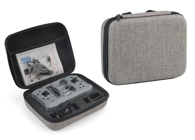 Conteúdo da embalagem: 1x dron, 1x bateria, 1x controlo remoto, 1x cabo USB, 4x arco de proteção, 4x hélices de substituição, 1x chave de fendas, 1x bolsa