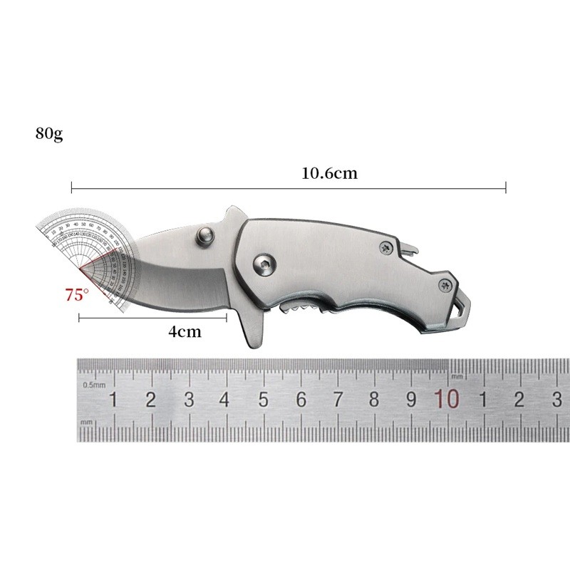 Esta mini faca dobrável é uma ferramenta multifuncional prática que combina uma lâmina afiada com um abridor de garrafas integrado. Com um comprimento compacto de 10,6 cm, é ideal para transporte diário no bolso, em passeios, para o trabalho ou na natureza. A lâmina é feita de aço inoxidável, que é resistente à corrosão e mantém a afiação mesmo com uso frequente. Graças ao mecanismo dobrável, a faca é segura para transportar e ocupa quase nenhum espaço. O abridor de garrafas adiciona uma função útil que é conveniente para viagens, campismo ou encontros à noite com amigos.