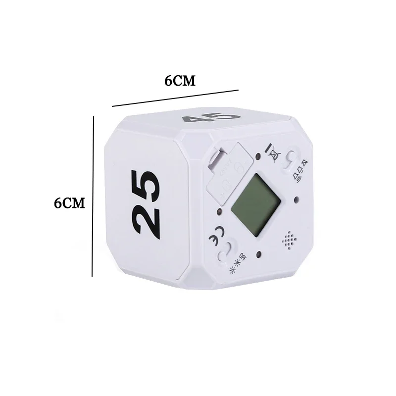 Minutador digital de cozinha em forma de cubo com controlo rotativo Mini temporizador com tempos predefinidos Versão recarregável e a pilhas Cozinhar Estudar