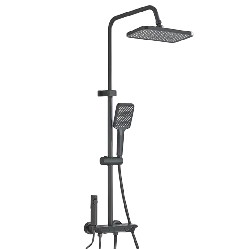 Este sistema de chuveiro completo com função bidé representa a solução ideal para casas de banho modernas que exigem conforto, praticidade e design elegante. Combina cabeça de chuveiro de chuva para uma experiência relaxante com chuveiro manual para máxima flexibilidade. Inclui também chuveiro bidé, que permite uma limpeza suave e precisa graças à alta pressão da água.
