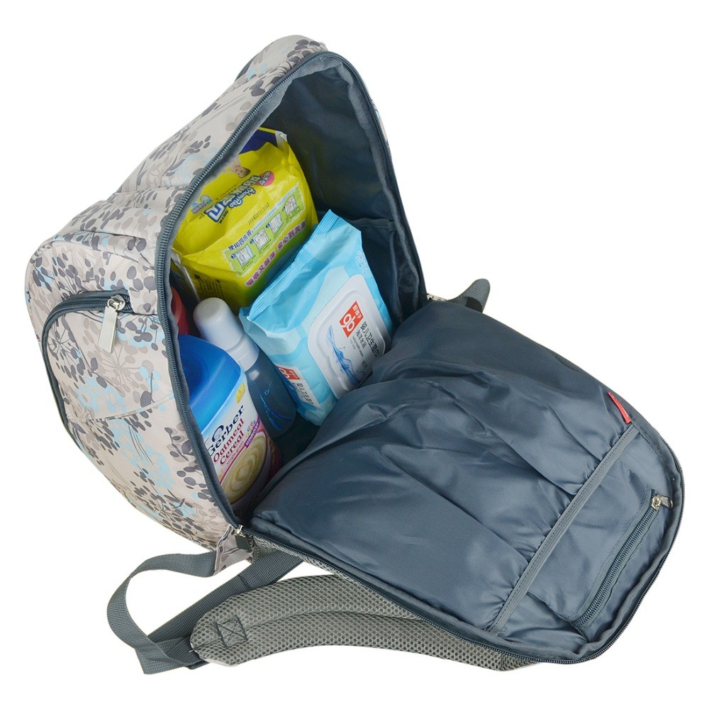 Prática mochila de maternidade feita de material impermeável para fraldas e outros itens.