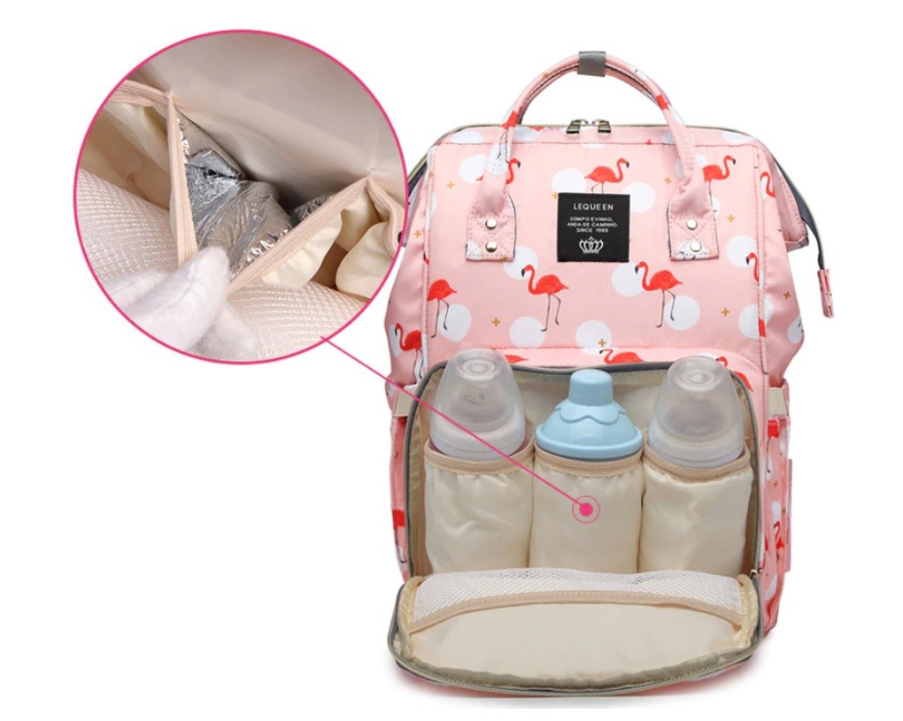 No lado da mochila há um grande bolso para toalhetes húmidos. Sem necessidade de abrir a mochila!