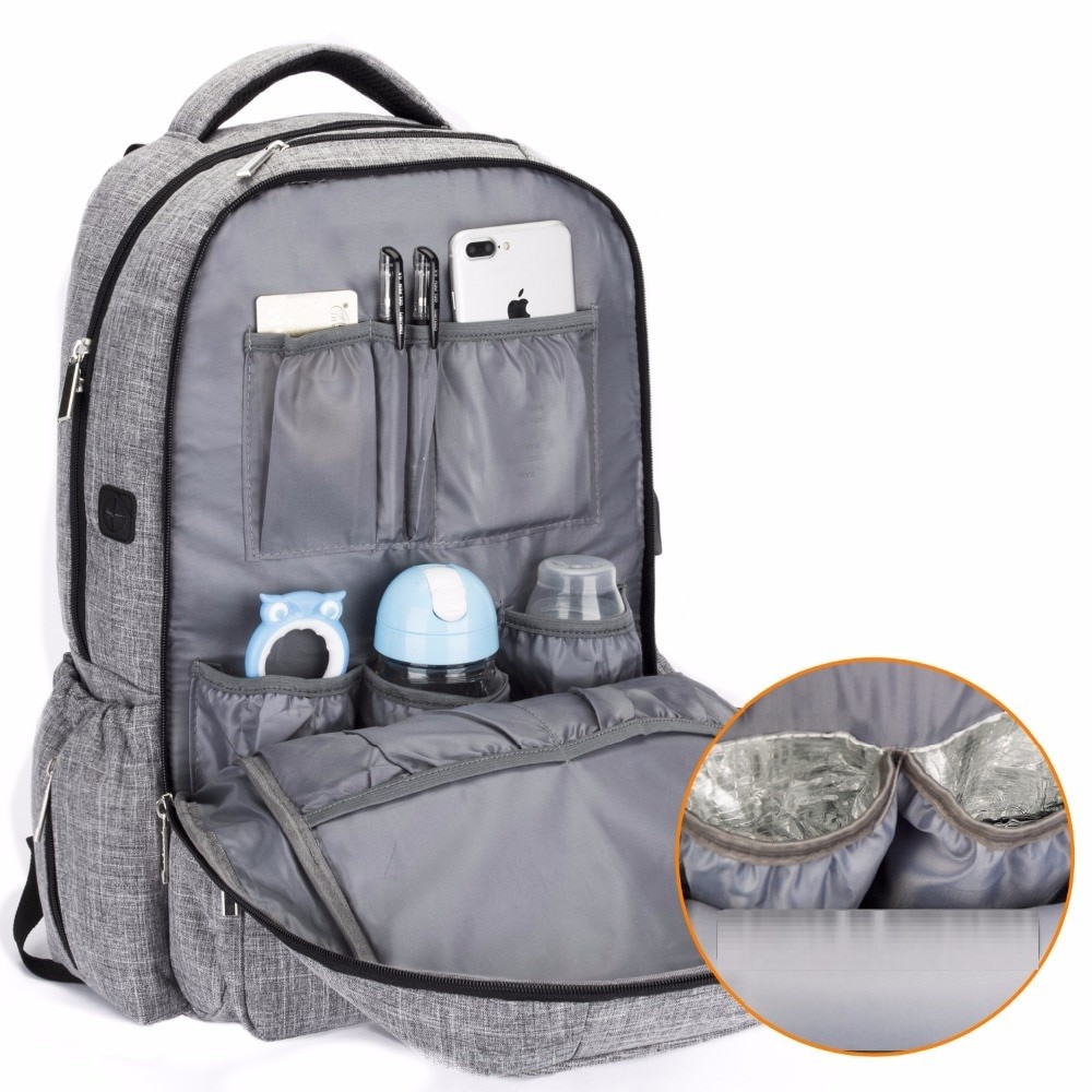 Conteúdo da embalagem: 1x mochila, 1x muda de fraldas, 1x invólucro térmico para garrafa