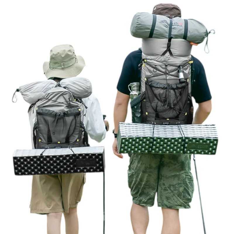 A mochila é feita de nylon 40D com revestimento anti-rasgo em combinação com tecido sintético 210D, o que contribui para o baixo peso e boa resistência mecânica. O design respirável da parte traseira aumenta o conforto ao usar, especialmente durante deslocamentos mais longos. Uma grande vantagem é o painel traseiro removível, que também pode ser utilizado como um prático tapete. A mochila adapta-se facilmente a diferentes tipos de atividades e exigências do utilizador.