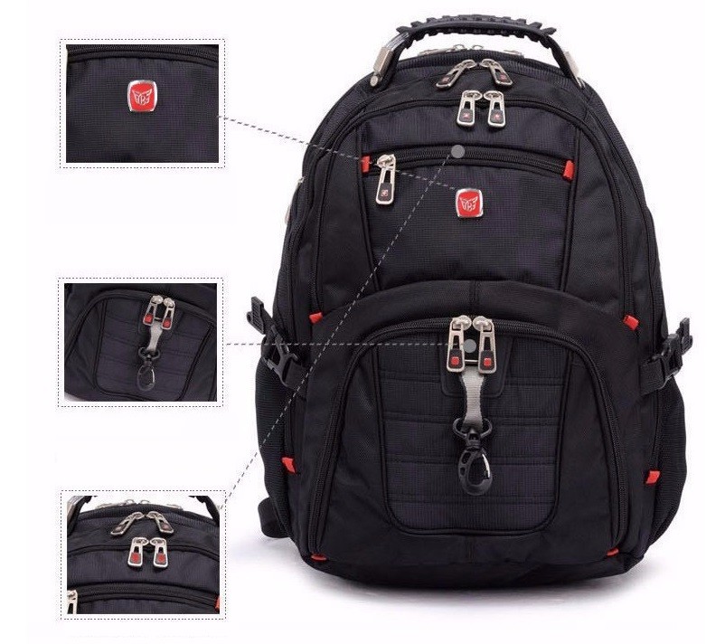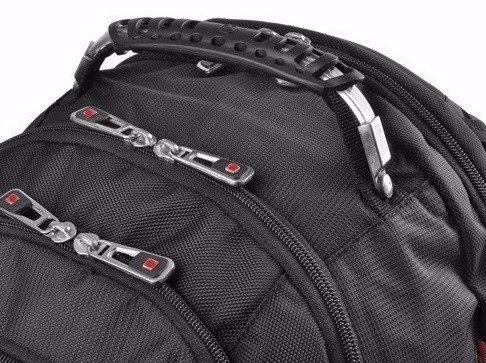 • compartimento principal da mochila com fecho de correr duplo e espaço aberto para laptop assegurado com uma correia de velcro