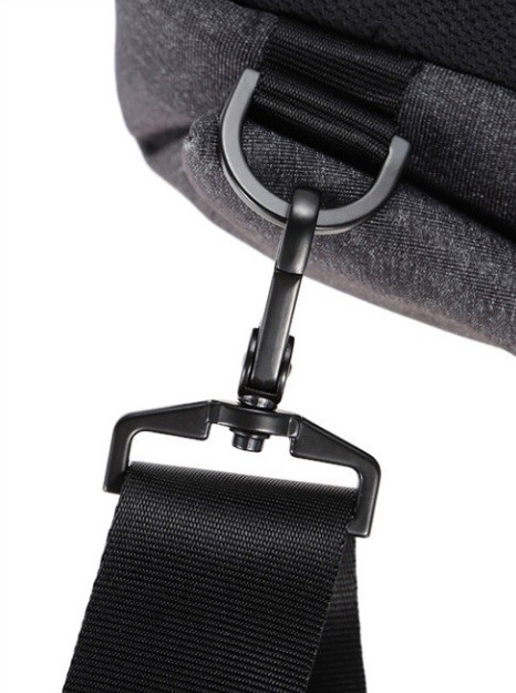 Mochila masculina casual com uma ampla alça acolchoada cruzada para um transporte confortável.