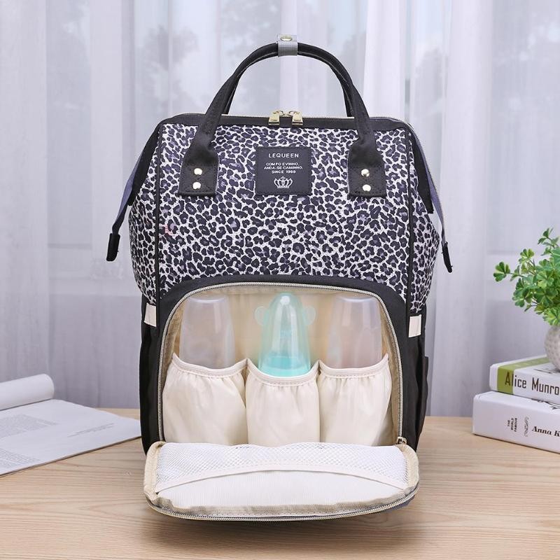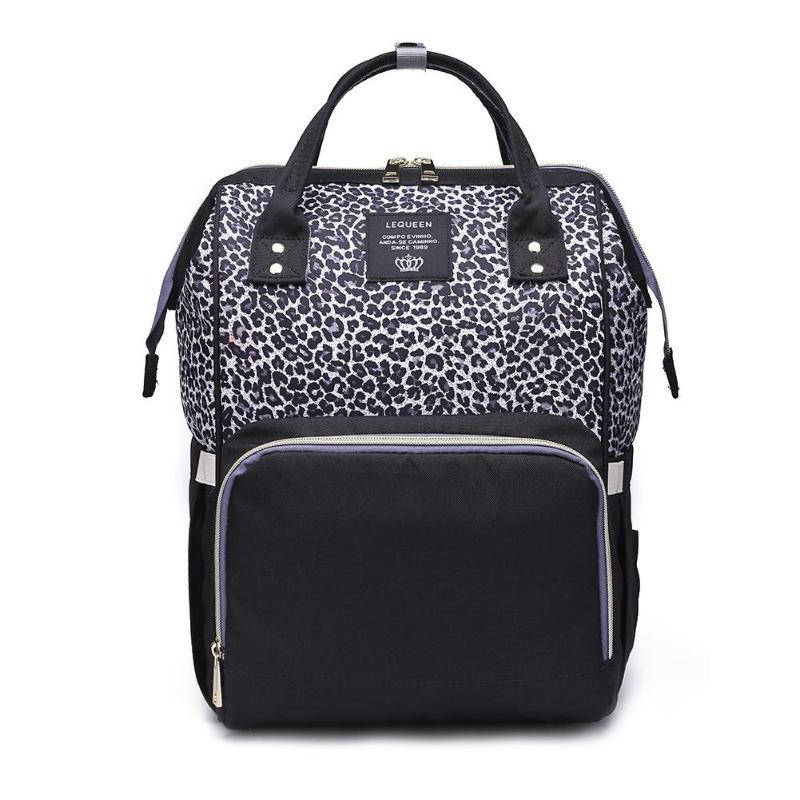 Mochila materna com padrão de leopardo