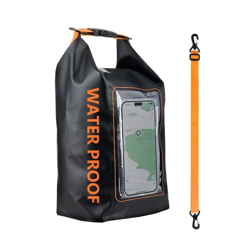 Esta mochila seca impermeável com capacidade de 5 litros é um ajudante prático para todos que precisam proteger os seus objetos durante desportos, viagens ou atividades na água. Graças ao material de PVC de alta qualidade e ao fecho enrolável engenhoso, o conteúdo está perfeitamente protegido contra água, humidade e areia. A mochila está equipada com uma bolsa tátil transparente para telemóvel, que permite o seu manuseio confortável sem a necessidade de o retirar. As dimensões compactas de 40×20×12,7 cm e a alça ajustável de 100 cm garantem um transporte confortável na praia, durante rafting, surf, caminhadas ou em barco. A combinação ideal de leveza, resistência e praticidade para aventuras diárias e de fim de semana.